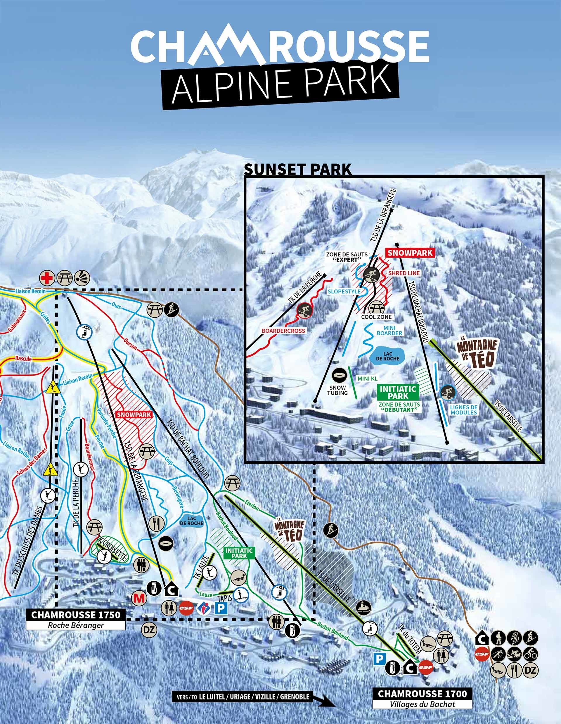 In Chamrousse zijn er verschillende mogelijkheden om te freestylen. Het "Sunset Park" ligt op ca. 1.900 m hoogte, is 500 m lang en ligt vlakbij het station Chamrousse 1750. Naast vijf kickers van verschillende grootte zijn er tal van boxes, rails en andere obstakels met verschillende moeilijkheidsgraden die wachten om bedwongen te worden. Het "Sunset Park" heeft ook een boardercross en skicross parcours en een chill-out zone waar je kunt ontspannen tussen de runs door of na afloop. Onder het "Sunset Park" ligt het "Kids Funpark", waar kinderen en beginners hun eerste freestyle-ervaring kunnen opdoen.